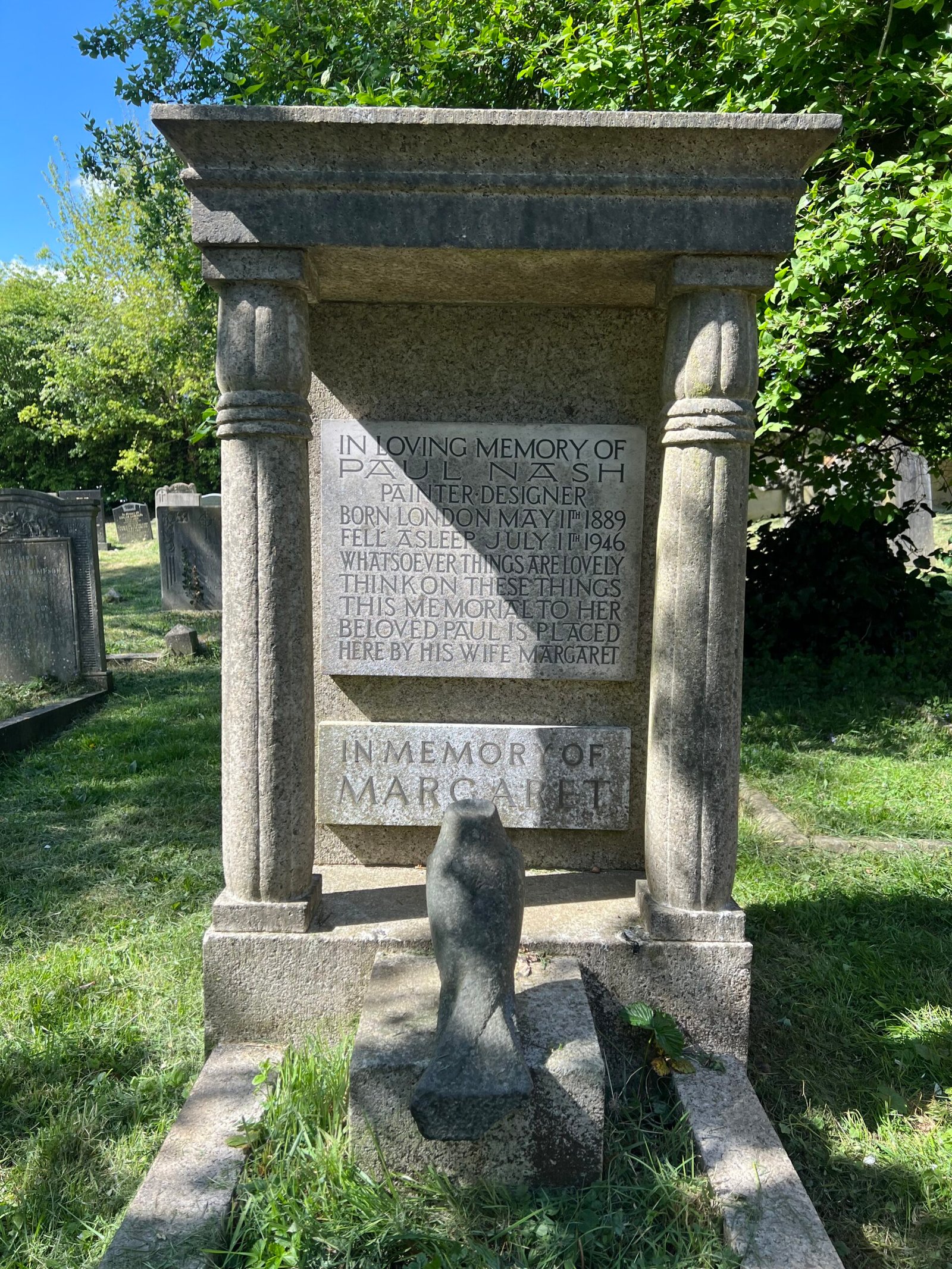 The well known and respected Painter, Designer and Official War Artist, Paul Nash is also buried here.